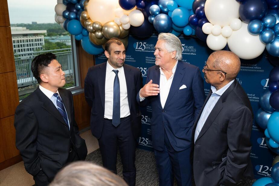 During the prior academic year, we celebrated 125 years of teaching international affairs at the George Washington University, from the 1898 creation of the School of Comparative Jurisprudence and Diplomacy through the institution we know today as the Elliott School of International Affairs. Our commemorative gala reception in April 2024, headlined by GW President Ellen M. Granberg, brought together distinguished alumni, faculty, staff, current students, and others in an evening that reminded us of our special strengths in research, teaching, and policy impact. Elliott School Board of Advisors Co-Chairs Marshall Parke and Jenna Segal, followed by former Deputy Secretary General of NATO Rose Gottemoeller, highlighted how their early preparation in international affairs paved the way for their own unique career pathways, and their great successes.